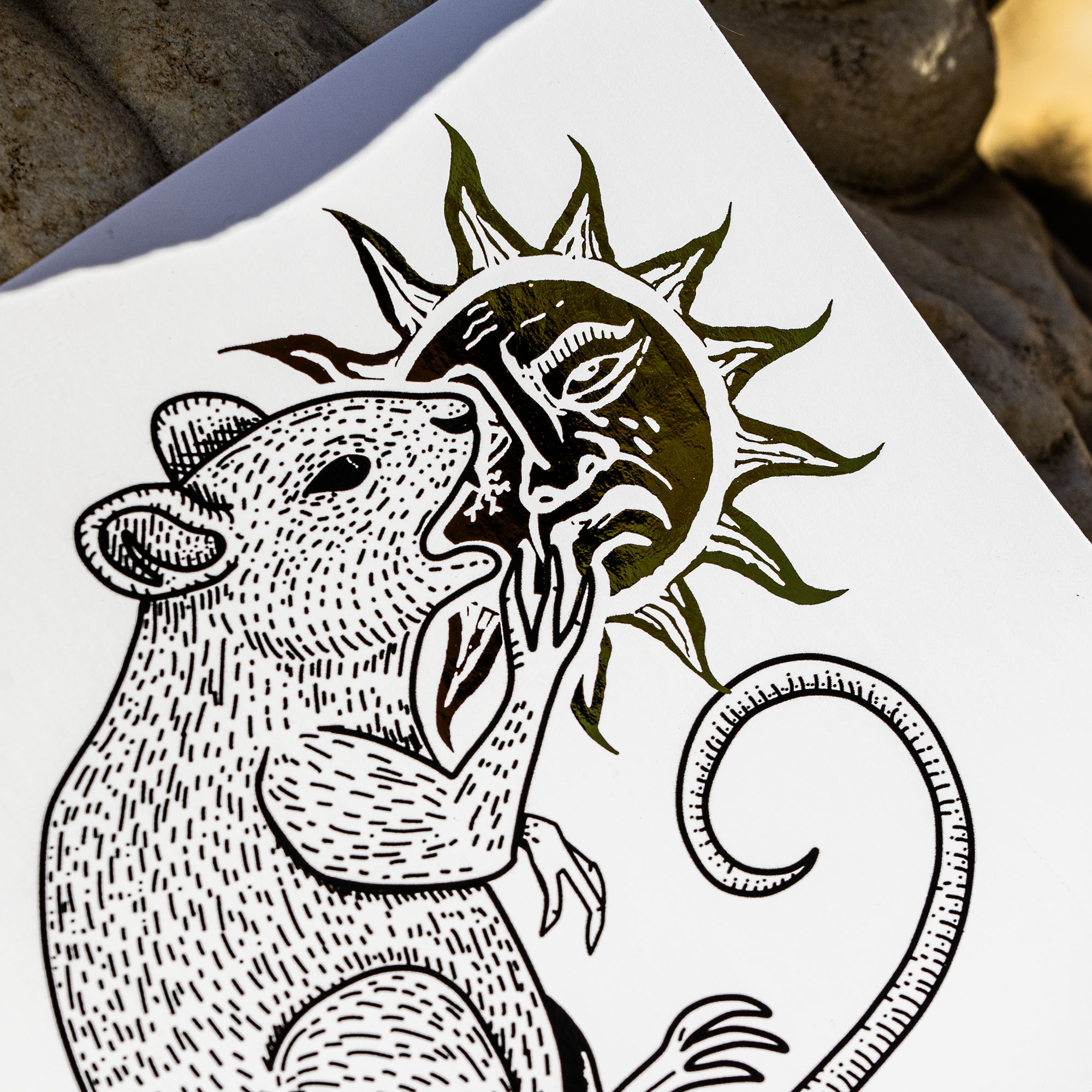 Crafted with precision and attention to detail, “Luminous Hunger” is a 12x12cm fine art print enhanced with elegant gold foil accents. This exclusive edition is strictly limited to 3 hand-numbered copies, offering collectors a rare opportunity to own a uniquely finished piece. Printed on high-quality stock and designed for longevity, Storm Eye is both a visual statement and a limited collectible.